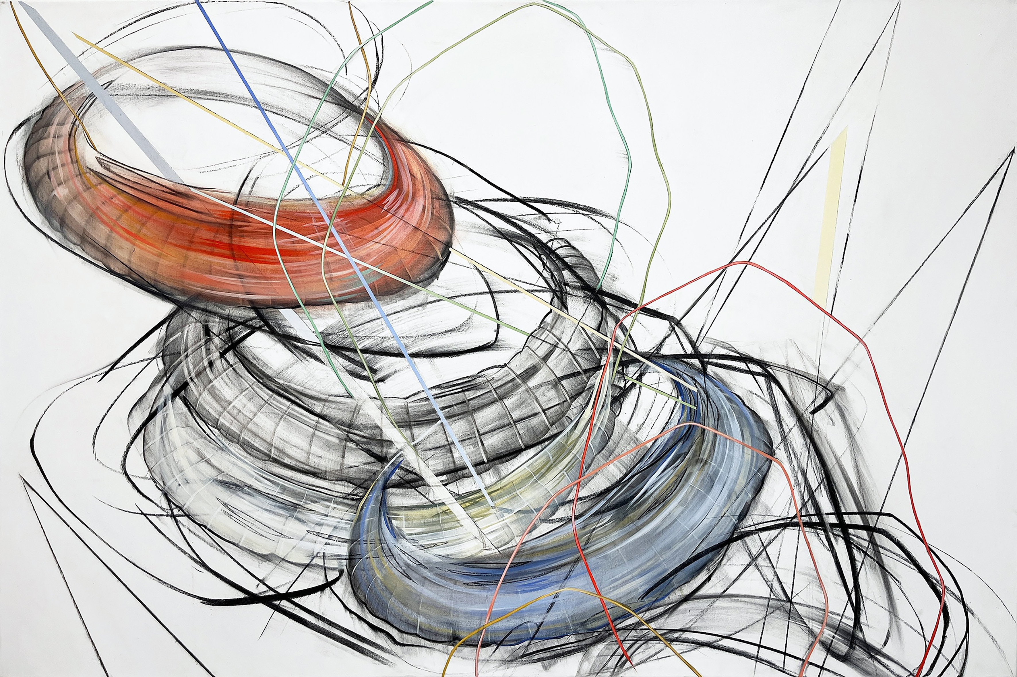 1) Two People Ascending a Staircase While Looking at Each Other 1, charcoal and acrylic on canvas, 2025 - 120 x 180 cm, Foto: Stylianos Schicho